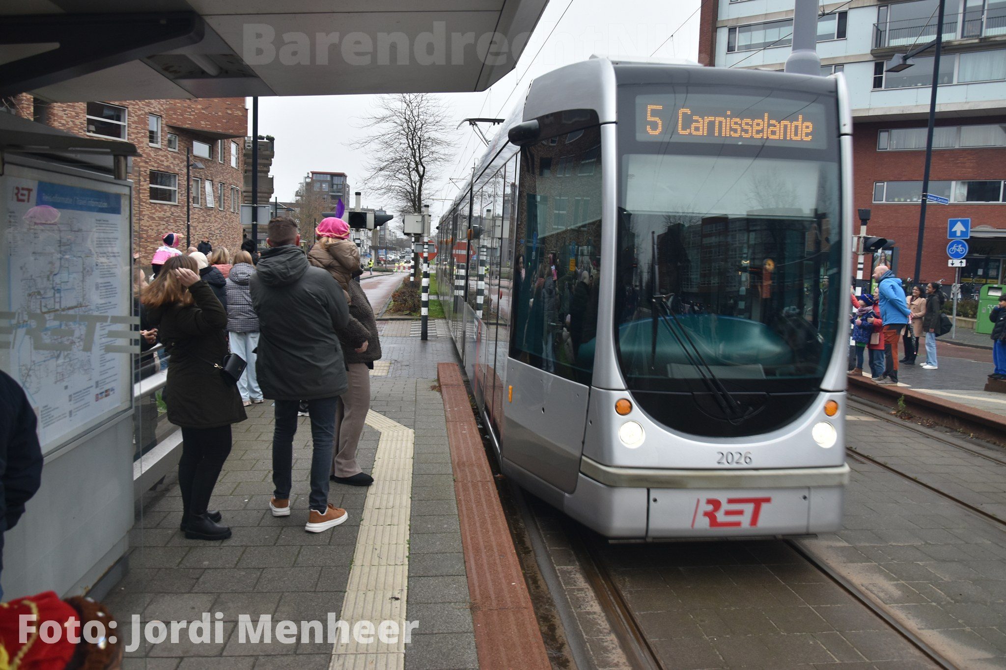 BARENDRECHT – [Foto’s] Sinterklaas kwam gistermiddag (Zaterdag 15 november 2025) bij de intocht in Carnisselande aan met de tram. Sint en Pieten stapten rond 13:30 uur uit bij de tramhalte Middeldijkerplein om daarna door de massa kinderen richting het podium te wandelen.
