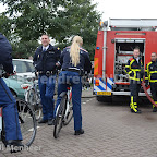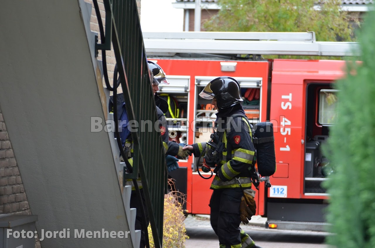 Bij aankomst heeft de eerste brandweerauto (TS45.1) direct de slangen uitgerold om aan de achterkant van de huizen een brand te blussen. De brand bevond zich op de eerste etage op de galerij. Omdat de brand in een spouwmuur zat was er speciaal materiaal nodig om de brand te bestrijden. Een speciale wagen is ter plaatse gekomen met de benodigde apparatuur. Echter, voor aankomst van deze vrachtwagen heeft een klusjesman de spouwmuur al kunnen openmaken met eigen gereedschap.