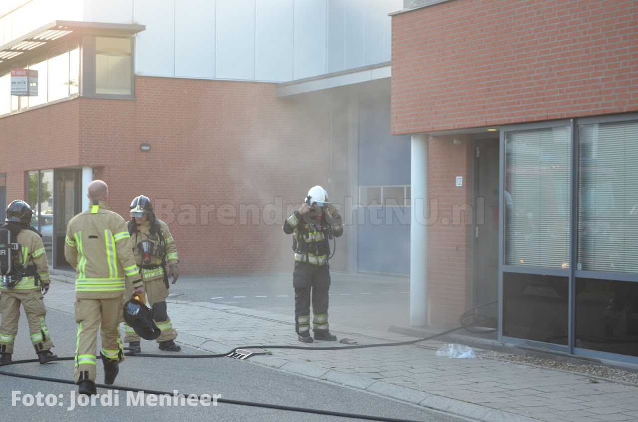 Ter plaatse bleek er in het pand brand te zijn ontstaan. Het gebouw, een kantoorafdeling en kleine loods, waren inmiddels gevuld met rook. De brandweer is het pand binnen gegaan en heeft de bron van de rook opgespoord. Dit was een kastje met daarin een papierversnipperaar. Nadat dit kastje uit het pand was gehaald heeft de brandweer het gebouw geventileerd.