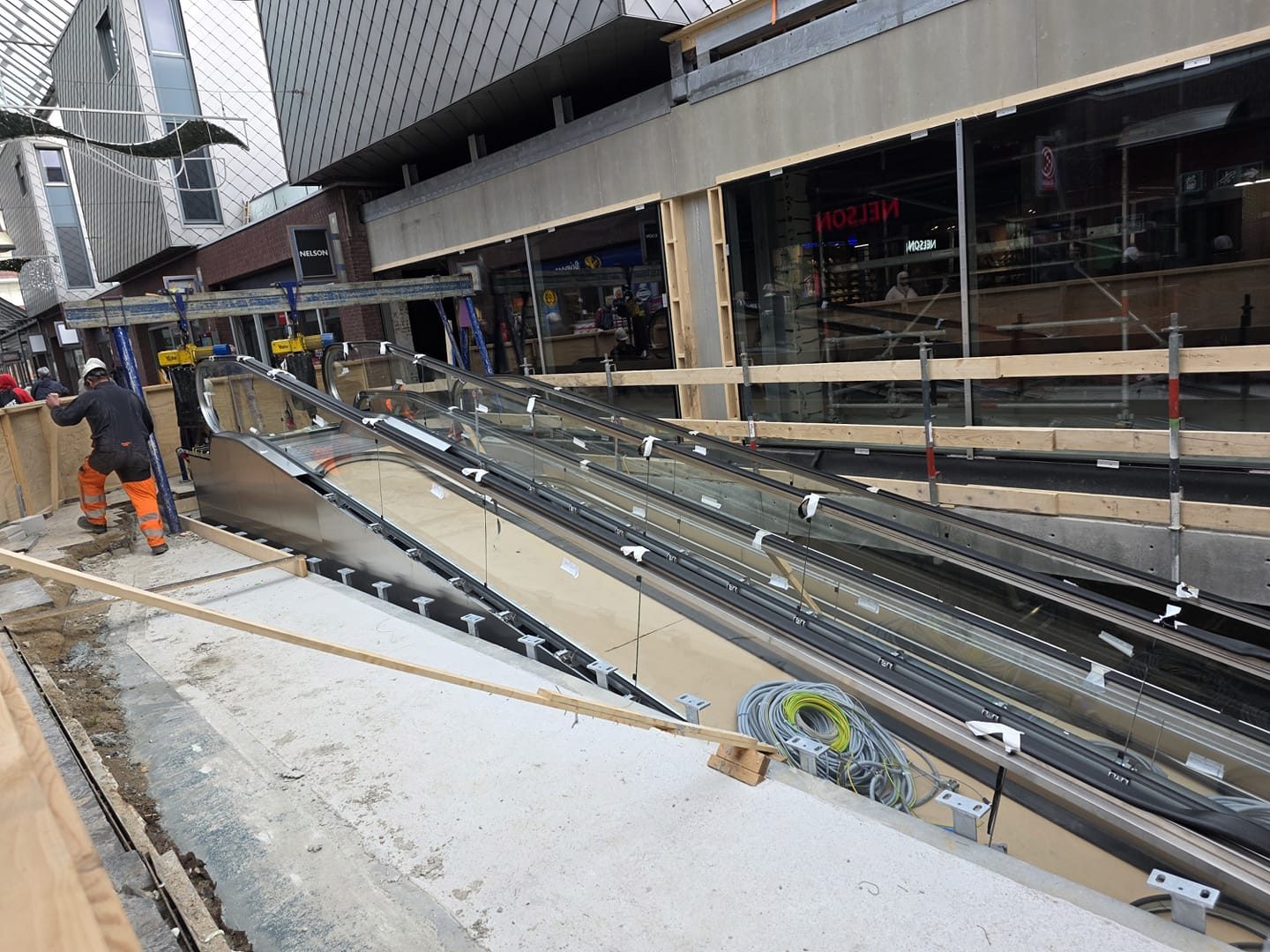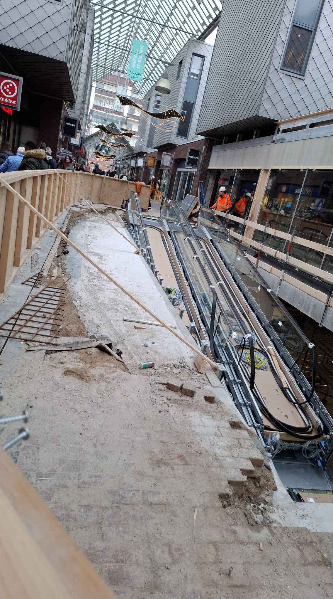 De rolbanden zijn afgelopen maandag en dinsdag op hun nieuwe plek gehesen: ze zijn vanuit de parkeergarage met een tijdelijke hijs-installatie naar boven getild en op hun plek bevestigd. In tegenstelling tot de vroegere roltrappen zijn de rolbanden vrijwel direct tegen de gevel van de nieuwe Lidl supermarkt geplaatst. Wie over het winkelcentrum loopt gaat vanaf nu via één kant langs de rolbanden. Het eerdere gat in het midden is hiervoor deels afgedicht/verplaatst. De werkzaamheden in de parkeergarage en bij de nieuwe rolbanden zouden rond het eind van de maand november afgerond moeten zijn.