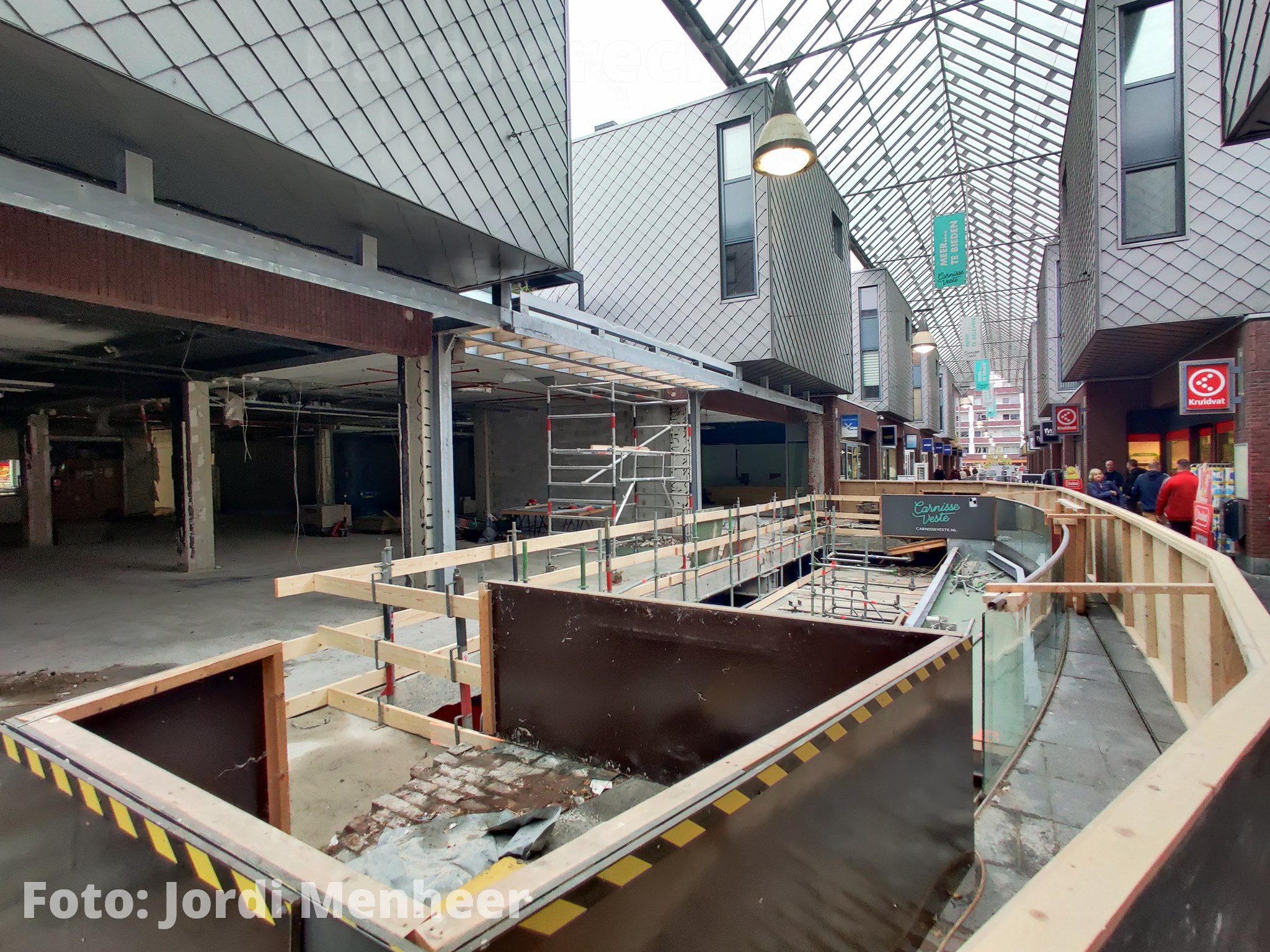 BARENDRECHT – Ruim 2 jaar geleden werden de roltrappen in de Carnisse Veste weggehaald. Bezoekers moesten lange tijd met een tijdelijke trap van de parkeergarage naar de hoger gelegen winkels. Deze trappen werden zo’n 4 maanden geleden (eind juni) ook weggehaald, omdat er werd begonnen met de grote verbouwing: De oude roltrap zou eindelijk plaats maken voor 2 nieuwe rolbanden.
