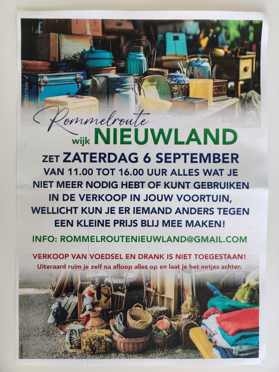 Vandaag van 11:00 - 16:00 uur in de hele wijk Nieuwland: Rommelroute wijk Nieuwland. Bewoners stallen hun (tweedehands) spullen uit in de tuin, waardoor de hele wijk een soort grote rommelmarkt wordt. Deelnemende tuinen zijn in veel gevallen herkenbaar aan vlaggetjes/ballonnen. https://t.co/1RDGvZldz6